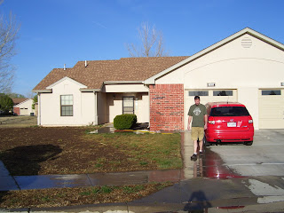 After loading a 17 foot UHaul, a Jeep behind that, a trailer with a Harley, and a 15 hour drive to New Mexico, we have finally moved into our house in base housing. It is just right for us! There are two bedrooms, one bathroom, and a one-car garage. The yard is a little barren. Not bad for the desert though. Rob has raked the ground and put down fertilizer and grass seed. We try to water it every day within our restrictions (after 6 pm on even number days). I hope to buy a huge flower pot and put flowers on the front door soon.